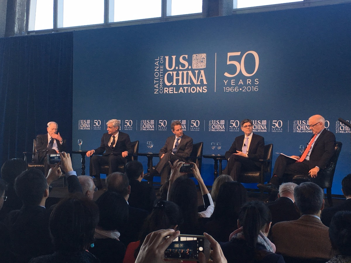 美中关系全国委员会29日晚举行带领人论坛,邀请四位美国前财务部长出席。这是委员会庆贺成立五十周年带领人系列论坛之一(黄晓敏摄)