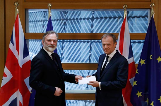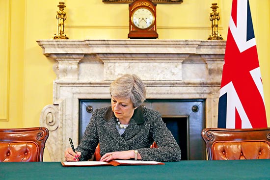 大公网3月30日讯(驻伦敦记者 李威)本港时间29日晚七点半,英国驻欧盟大使巴罗将辅弼文翠珊签订的分手信递交给欧盟理事会从席图斯克,正式启动脱欧法式,这场决定英欧双赢仍是双输的离婚大和也拉开帷幕。正在将来两年的构和中,英国取欧盟将面对商业、移平易近等诸多棘手问题以及内部割裂的危机,最终可否告竣和谈充满变数。