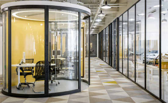 新通乐学城共六层,跨越8000㎡,是全国首家教育分析体。1层是欢迎区和歇息区,2-6层则为讲授区,宽阔的结构仿佛一方的糊口空间。空间内部均用玻璃和木格栅做为距离,代替了保守的实体墙面。其间不少场合都采用了弧形符号,优秀的动线设想付与空间以灵动。