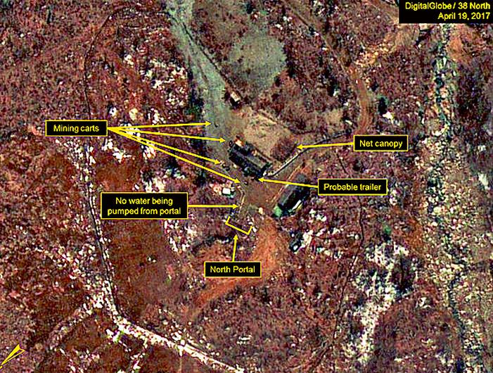 卫星照片显示,核试验场的一个地道洞口,似乎有拖车。阐发人士此前发觉,朝鲜比来从地道抽出很多水,应是为了连结测试设备乾燥。但卫星照片中,朝鲜似乎已遏制从地道里抽水。阐发称,这也许意味着为了进行试验,朝鲜已将地道封了起来。
