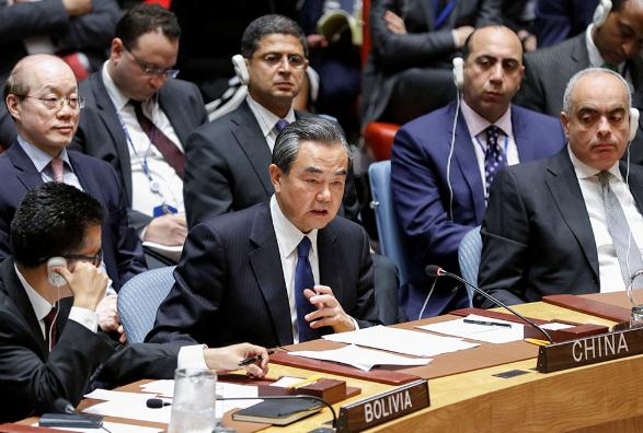 图:28日,交际部长王毅正在纽约出席结合国安理会朝鲜半岛核问题部长级公开会,代表中方讲话中新社