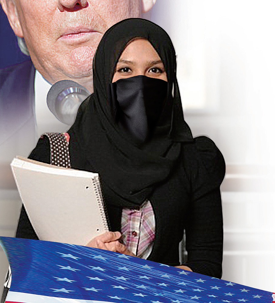 图:报道指,穆斯林学生担忧正在公家场所戴头巾会遭到美国粹生的\网上图片