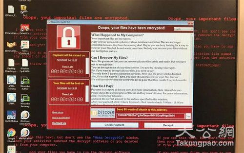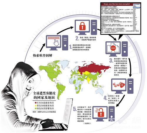 大公网5月14日讯 分析英国《每日邮报》、法新社、透社报道:全球99个国度或地域的逾7.5万台电脑蠕虫式病毒传染,者包罗欧美和亚洲多国。业界暗示,这是有记载以来最严沉的黑客。黑客美国国度平安局(NSA)收集兵器库中泄露的黑客东西,製成软件。目前受灾最严沉的是俄罗斯,虽然本港仅一名市平易近遭到黑客,、病院等其他部分暂未被波及,但电脑保安变乱协调核心13日已就加密软件,发出极端保安通知。