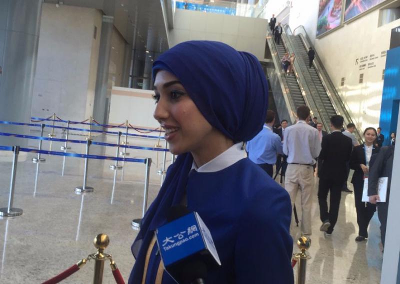 来自迪拜中阿卫视的阿拉伯女记者馨玥 大公网记者张韦韦摄