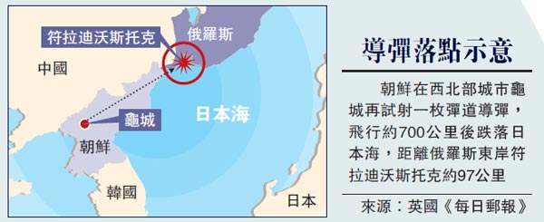 美国承平洋司令部指出,朝鲜发射的不是洲际导弹,不合错误形成。美国一官员称,落点距离俄罗斯东岸、俄承平洋舰队驻地符拉迪沃斯托克仅约97公里。白宫颁发声明说,导弹落点如斯接近俄罗斯,美国总统特朗普并不认为这是俄罗斯愿见的工作。声明暗示,平壤的搬弄等同呼吁所有国度对其实行更强硬的制裁。