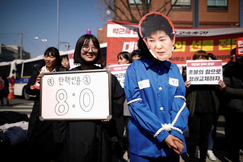 65岁的朴槿惠是继全斗焕、卢泰笨之后,第3名因贪腐接管的韩国前总统。全斗焕和卢泰笨因贪污和兵变罪被判服刑。