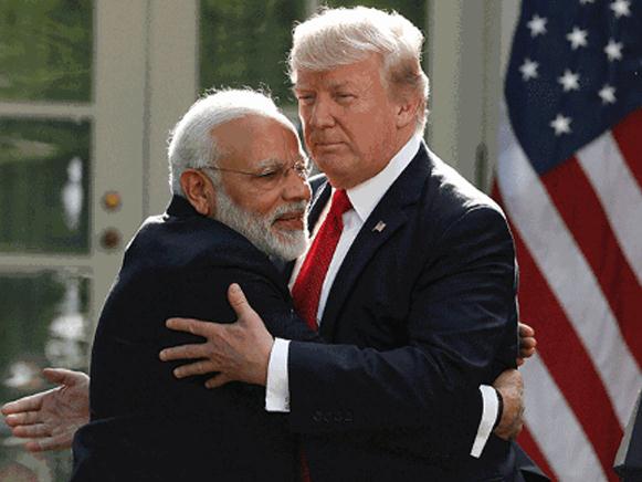 图:印度总理莫迪(左)6月26日正在白宫取美国总统特朗普拥抱/