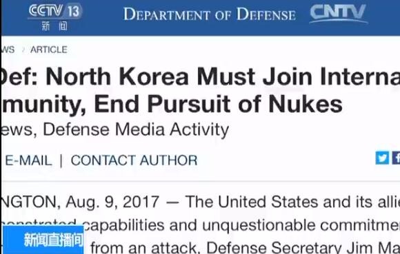 图:央视旧事曲播间发布了美国长马蒂斯上任以来发布的对朝最激烈声明。