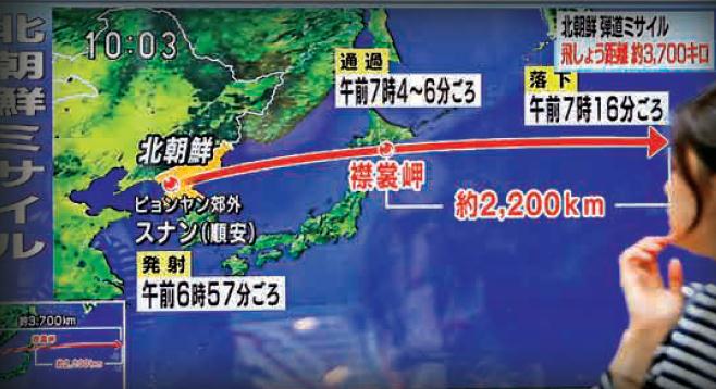 大公报9月16日讯 分析韩联社、、法新社报道:结合国安理会周一(11日)分歧通过向朝鲜实施新一轮制裁之后,朝鲜于15日晚上6时57分许正在平壤顺安一带向半岛东部海域发射一枚型号不明的导弹。该导弹飞次日本上空,消息正在清晨叫醒日本数以百万人平易近,遍地警铃大做,手机也响起告急警报通知。相当不安,有人担忧将来将永无宁日。韩国亦随即正在东海举行弹道导弹演习回应。