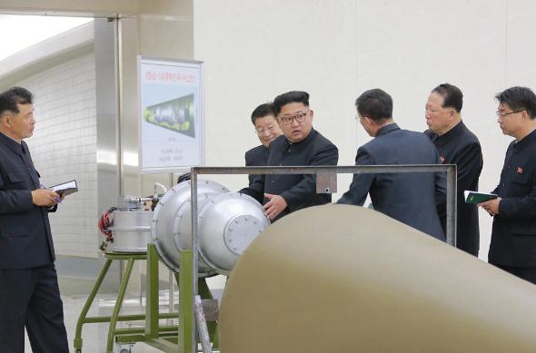 图:朝鲜9月3日核试前几个小时,朝中社报道了该国最高带领人金正恩视察核兵器研究所,并称金正恩了一枚新制制氢弹。