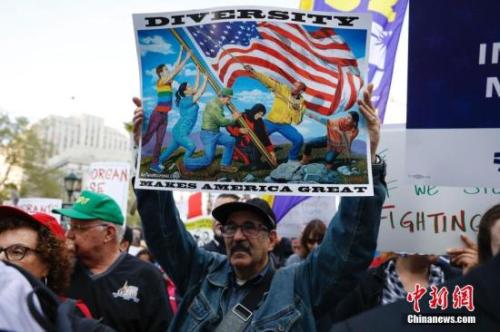 材料图:本地时间5月1日,数千名分歧肤色的纽约市平易近堆积正在纽约市政厅前的弗利广场,特朗普移平易近、争取工益。 中新社记者 廖攀 摄