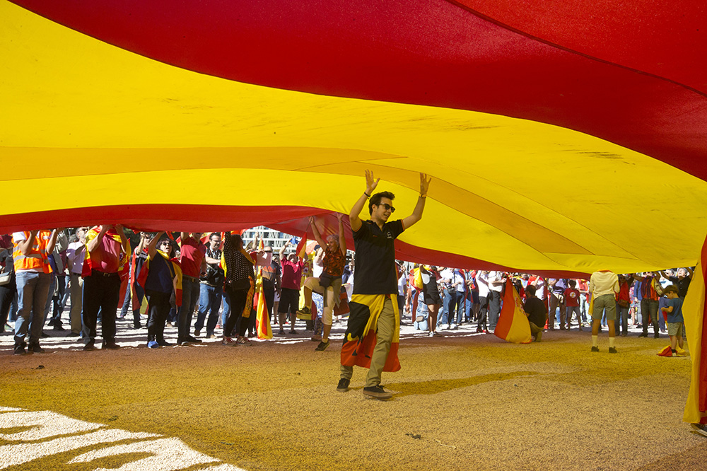 西班牙市核心的科隆广场变成西班牙国旗的海洋,数千人举行爱国逛行,捍卫国度同一。一个名为我们来谈谈的集体,呼吁身穿白色衣服正在市政厅等地址堆积,要求两边对话处理问题。