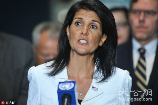 材料图:美国常驻结合国代表尼基·黑莉(Nikki Haley)。图片来历:东方IC