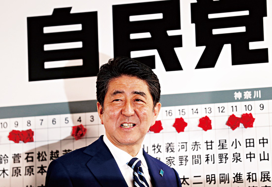 图:10月22日晚,日本辅弼安倍晋三正在自平易近党总部期待选举\透社