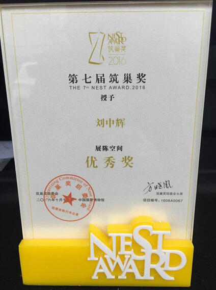 2016年10日26日,《第七届筑巢奖颁奖盛典》在中国国家博物馆(博物馆装修效果图)举行。四合茗苑中式(中式装修效果图)设计师刘中辉先生以参赛选手的身份参加了本次颁奖典礼。在现场除了来自全国各地的参赛者,也看到多位相关专家的身影。活动分为学术论坛和颁奖典礼,分别在当天上午和下午于中国国家博物馆小剧场举行。颁奖典礼上四合茗苑设计师刘中辉荣获第七届筑巢奖展陈空间优秀奖,一时间刘中辉三个字成为备受瞩目的焦点。据悉此次筑巢奖吸引了全国设计师投来的千余份参赛作品。