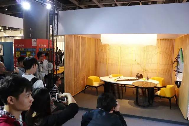 这是黄昏的景色,希望通过家具的体现,来烘托喝茶生活中的意境。”空间中运用了比较原始的材料,比如青砖作为地面的构造,他们将室外的景观应用到室内空间,体现出茶艺的氛围,展现休闲的生活方式。