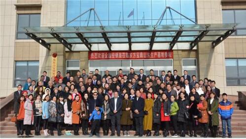 东方宝鼎集团领导与全国经销商家人在寿光工厂合影留念