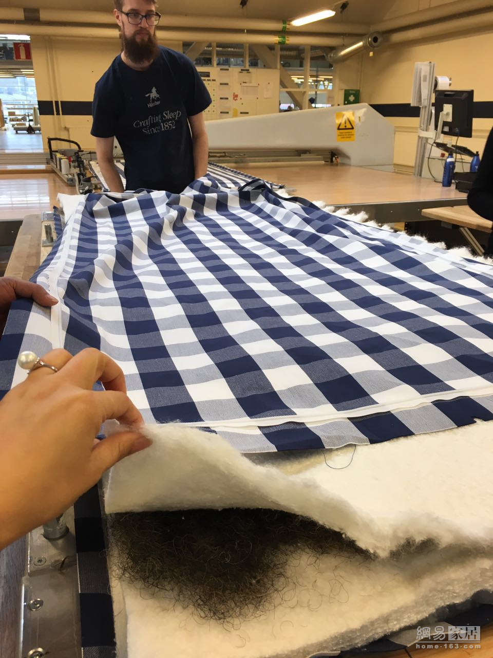 但正在制做整个床垫的工艺中,海丝腾工艺担任人暗示床垫腰线的缝制是最为坚苦的环节,工人用针穿过床垫中的弹簧和各层材料,不克不及打乱床垫本来的布局,所以力道和技巧控制得恰如其分,这个环节对峙手工也是要防止机械缝制时对床垫原有布局的粉碎。