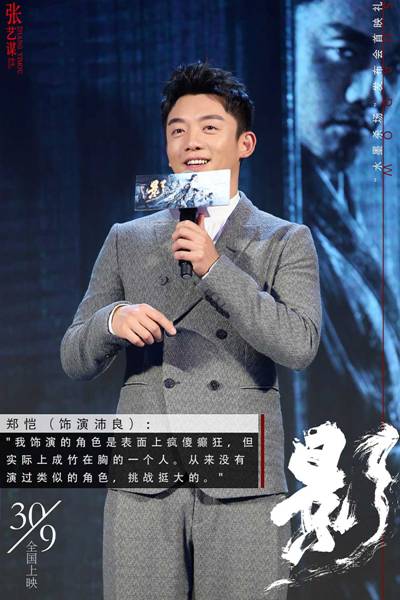 现场环节,七大主演频频爆料,笑点不断,细节之处又彰显剧组主创的专业与敬业。邓超爆料与张艺谋导演第一次见面竟是在中戏的厕所,那时就已经非常崇拜导演了,而今终于如愿与导演合作;谈到这部戏一人分饰两角的过程,为了真实呈现两个角色的差异巨大,先增肌20斤再迅速减重40斤,险些在片场晕倒;在不用太多特效的情况下,如何将两个邓超同框的戏份,既演得出彩又严丝合缝的对上,难度之大更是完全超过之前想象。孙俪不仅为塑造角色苦练古筝琴瑟,更透露为配合5K拍摄全程淡妆出镜近乎素颜。郑恺、王景春现场挥笔大秀书法“沛”、“影”二字,却被邓超吐槽一个写得太草,一个写得太开,写的是“沙”和“景春”;胡军“弃武从艺”为影片设计潮牌服饰作为感恩赠礼;关晓彤、吴磊回忆拍戏过程不忘感谢导演帮助。
