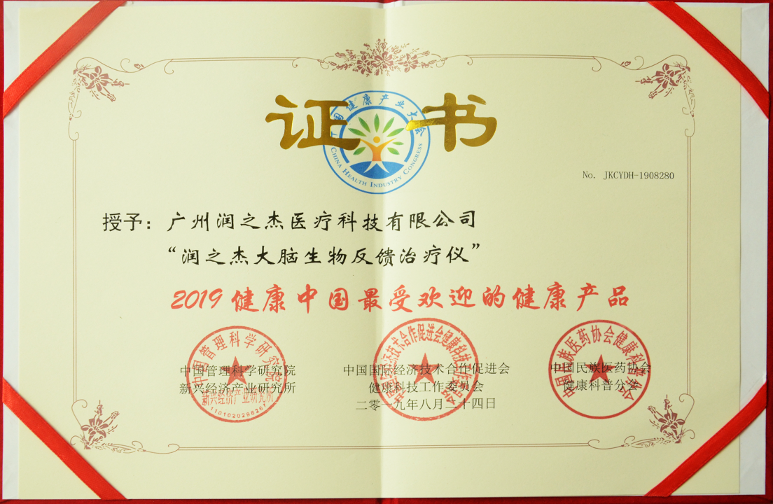 润之杰大脑生物反馈治疗仪在刚结束不就的2019健康中国产业大会上斩获了“建国70周年健康中国特别贡献奖”和“2019健康中国最受欢迎的健康产品”两项大奖,体现了中国健康产业大会及社会大众对润之杰大脑生物反馈治疗给予了极大的肯定和认可。