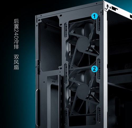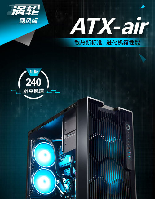为了更好地发挥全新ATX-Air架构的威力,涡轮飓风机箱还实现了水平散热风道的革命性突破,冷热空气前进后出,相比起传统的垂直散热风道,在无包仓全开放的架构下,散热效能提升尤为明显。当然,机箱还有终极“一大招”,那就是它把背板改造成了240的散热配备,也就是机箱背部可装载240mm的水冷排或是两颗12cm的散热风扇,这可谓是从源头上实现了散热装备的新升级,时刻总有强有力的散热装备助力,无论是深挖核心硬件性能的潜力,还是进一步延长其使用寿命,都是那样得心应手。