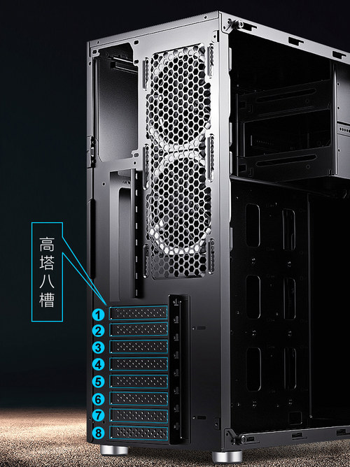 涡轮飓风机箱散热固然强劲,但它的兼容扩展能力同样也十分出色。高塔八槽的基础架构,可兼容长度达到400mm的顶尖显卡和长度在175mm以内的CPU散热器,通过立体挂载的方式,实现了2HDDD+5SSD的存储能力配备,可以说,在无包仓开放式的架构下,驾驭中高端玩家的扩展应用需要绝对没有问题。