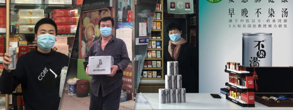 不染汤能在竞争白热化的功能饮料界迅速杀出重围,更多源于在此次新冠疫情中被云南省政府指定为驰援武汉医疗队防疫物资,用于医护人员预防肺部感染,其清肺润肺提升免疫力的功效获得专业认可,可谓一炮打响。“疫情期间很多货供不上,年前我们囤货的一批不染汤在新闻出来以后意外的成了店里的爆款,附近的老客都是成箱往家里搬,直到后来我们不得不限量售卖。”北京朝阳区经销商杨先生介绍说,“医护人员也喝不染汤的新闻一出来,我给自己家里也留了几箱,全家人那段时间都省着喝。”