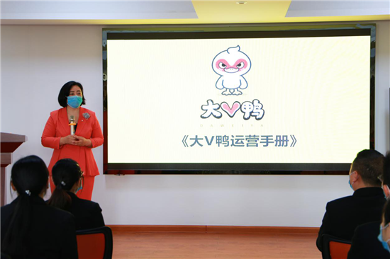 交付现场,绒言绒语吉祥物文化传播有限公司董事长郑淑对大V鸭的创作背景、设计理念以及大V鸭在不同场景中的应用方式等进行深度解读。“满意+惊喜”是永强集团董事长黄永强对绒言绒语及吉祥物IP大V鸭的赞誉。