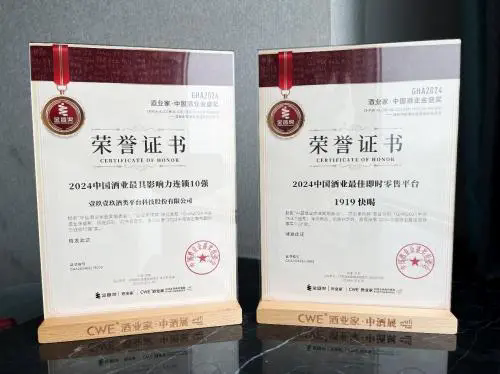 2024年6月,壹玖壹玖酒类平台科技股份有限公司在2024中国酒业金盛奖评选中荣膺「2024中酒酒业最具影响力连锁10强」,壹玖壹玖旗下的即时零售云连锁业态——1919快喝获评「2024中国酒业最佳即时零售平台」。这两项大奖是对壹玖壹玖的高度认可,从成都到全国,从线下到全渠道,从单一零售连锁到全新酒饮场景生态平台……壹玖壹玖在18年间不断创新进化,现已布局全国1000+城市,拥有超5000家门店,实现全场景线下门店布局与全渠道电商流量分发,2023年总交易额突破百亿,不断为行业发展提供新思路。