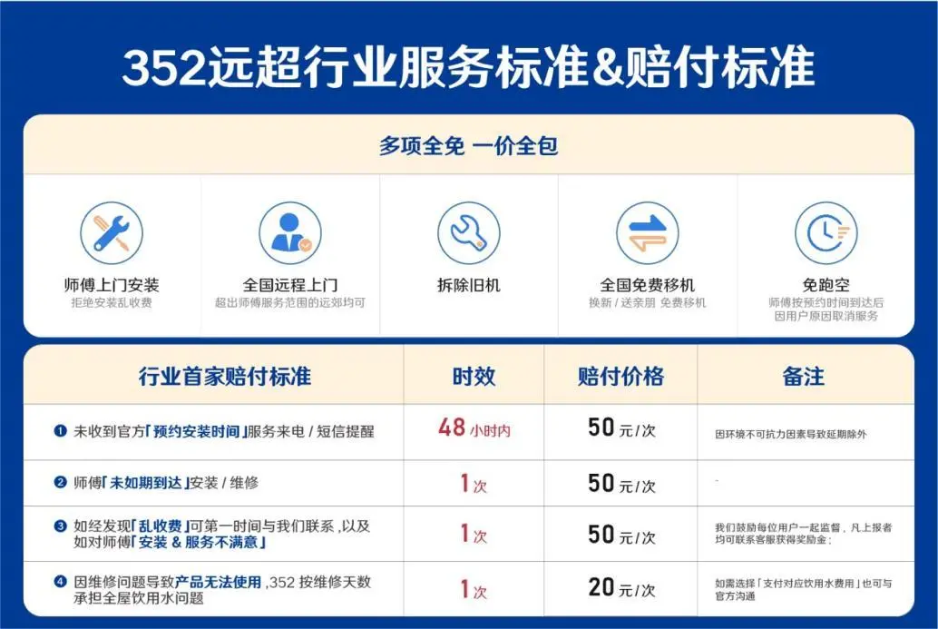 352的崛起印证了一个真理:在信息透明的时代,唯有经得起显微镜检验的产品与服务才能赢得市场。当同行还在追逐“膜通量竞赛”时,352已构建起“技术普惠+服务托底”的新生态——日均0.4元的滤芯成本、30天的深度体验权、605项水质检测保障。这些看得见的价值锚点,正引领行业从“参数迷雾”走向“体验明牌”。
