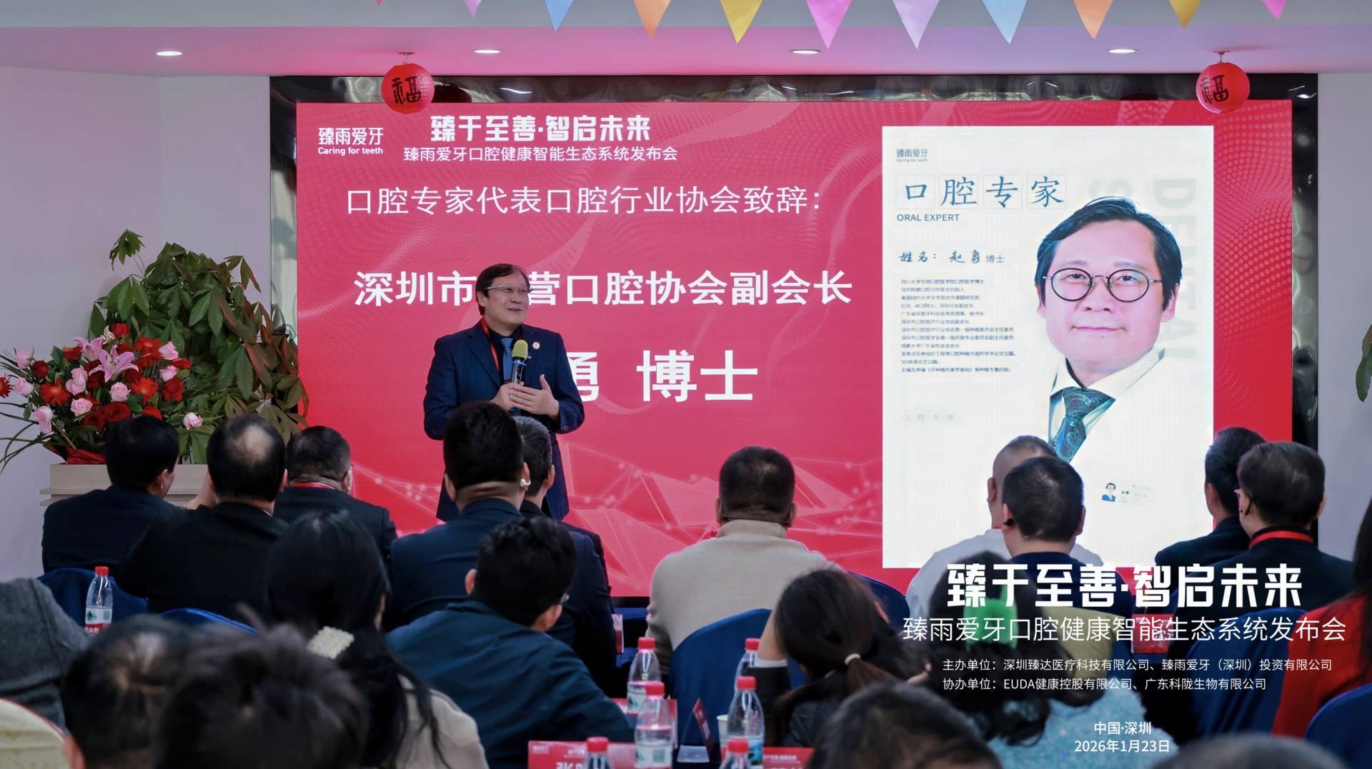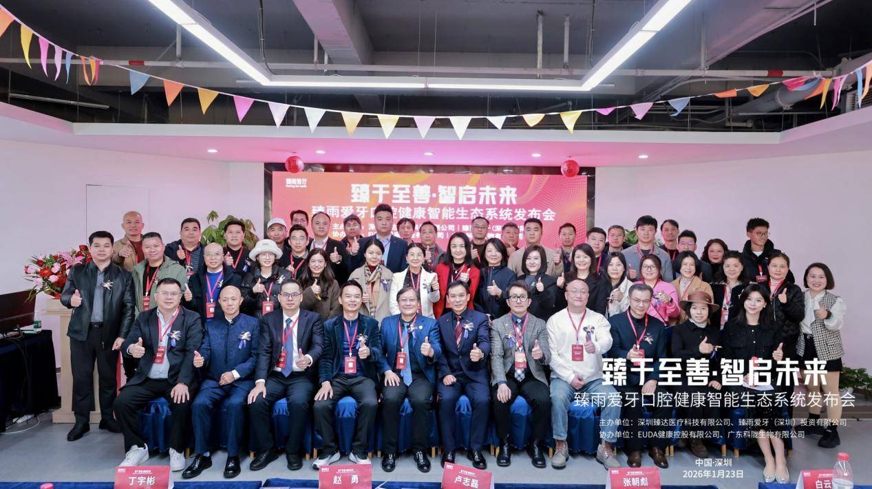 2026年1月23日,由深圳臻达医疗科技有限公司、臻雨爱牙(深圳)投资有限公司联合主办的臻雨爱牙智能生态系统发布会暨全国口腔预防生态建设峰会在深圳南山区隆重举行。本次盛会以 “数字化赋能预防,生态化共筑健康” 为核心,汇聚了口腔全产业链企业代表、权威专家学者、监管部门负责人及渠道合作伙伴,共同见证国内首个专业口腔智能生态系统落地,共商口腔预防生态建设新路径,为 “健康中国” 战略在口腔领域的深化推进注入强劲动力。